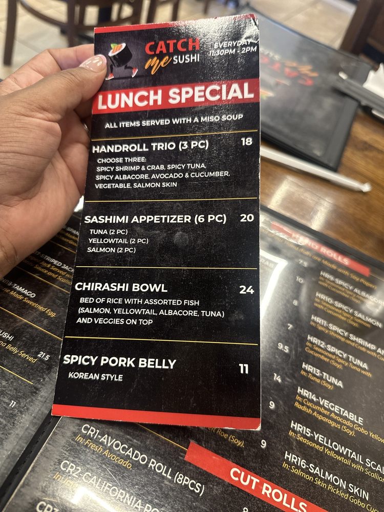 Welcome to Catch Me Sushi, a hidden gem in Canoga Park that offers a classy yet casual dining experience. With a wide range of freshly prepared sushi options and a variety of beverages including beer and wine, Catch Me Sushi is perfect for group dinners or intimate meals. The menu features appetizers like Agedashi Tofu, Assorted Tempura, and Baked Mussel, showcasing the chef's creativity and attention to detail. Customers rave about the fresh and delicious sushi, excellent service, and the welcoming ambiance of the restaurant. The staff members Hector and Alex are highly praised for their friendly demeanor and knowledgeable recommendations. Whether you're a sushi enthusiast or looking to try something new, Catch Me Sushi promises a memorable dining experience with its quality ingredients and chill vibe.