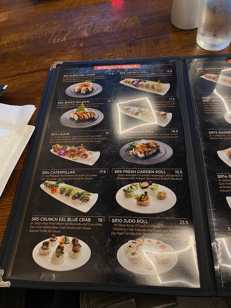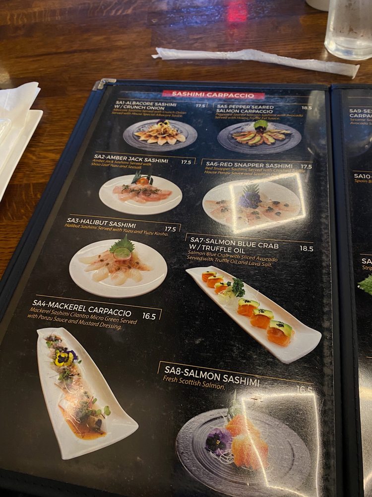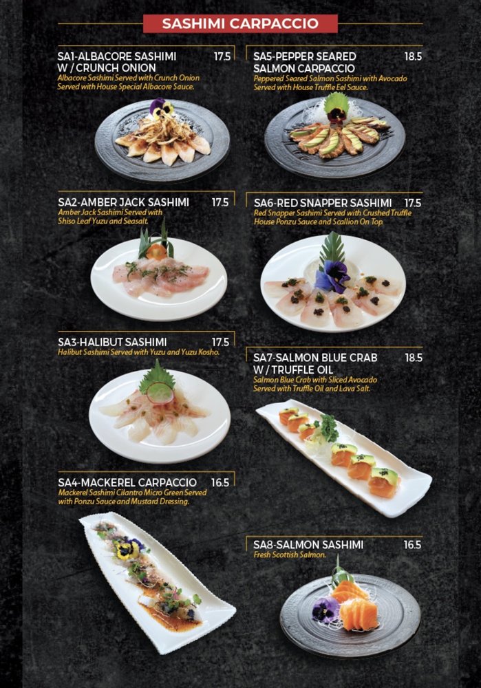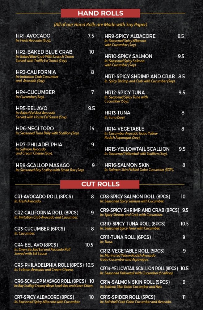In: SPICY TUNA WITH CUCUMBER Out: YELLOWTAIL SERVED WITH HALF PONZU HALF YUZU LEMONTAIL SAUCE